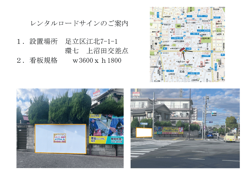 T-AD-10134 環七 上沼田交差点 物件No.T-AD-10134 物件名環七 上沼田交差点 所在地足立区江北7-1-1 サイズW(横)3600 サイズH(縦)1800 摘要 ↓画像をクリックすると拡大されます。 ※streetviewは現状と相違する場合があります。参考としてご覧ください。 クライアントおよび掲出内容、デザイン審査が有ります。 看板の価格、最新空き状況は下記よりお問い合わせください。 ↓お問い合わせはこちらから By artfine | 2021年2月8日 | 1)東京都23区, 看板物件情報 | ← T-ST-20234 環八 瀬田 三段式上段 T-NK-20193 環七 大和陸橋 野方ビル屋上A →